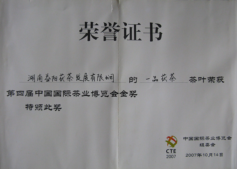 中國(guó)茶葉博覽會(huì)金獎(jiǎng)