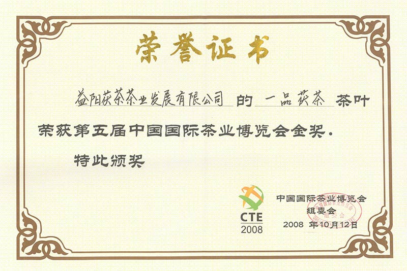 第五屆中國國際茶博會(huì)金獎(jiǎng)