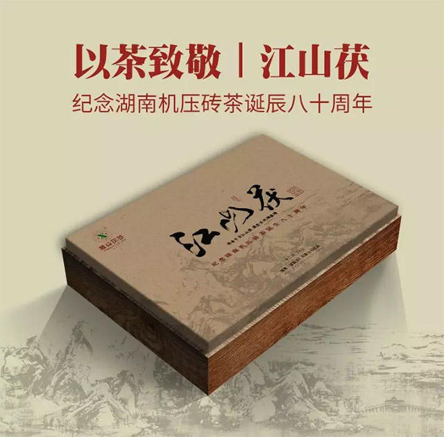 為隆重紀念湖南機壓磚茶誕生八十周年,湘益特推出本款“江山茯”紀念茶,銘記這一重要歷史時刻。