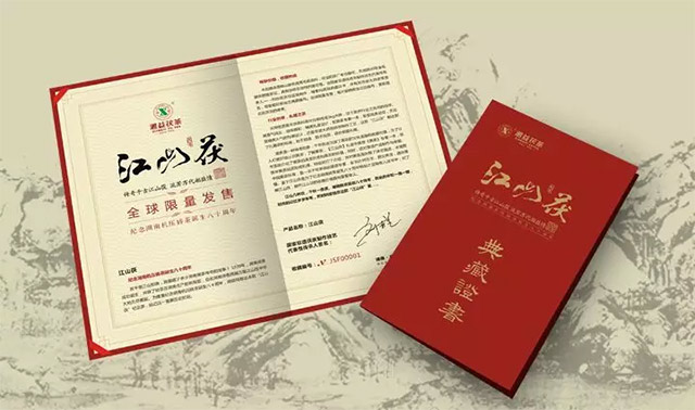 由國家非遺茯磚茶制作技藝代表性傳承人——劉杏益親自監(jiān)督制作,每套均具有典藏證書,并有劉杏益大師親筆簽名,每套都標有獨立典藏編號。全球限量發(fā)售,每片都擁有獨立的編號,更彰顯此款茯茶的尊貴。