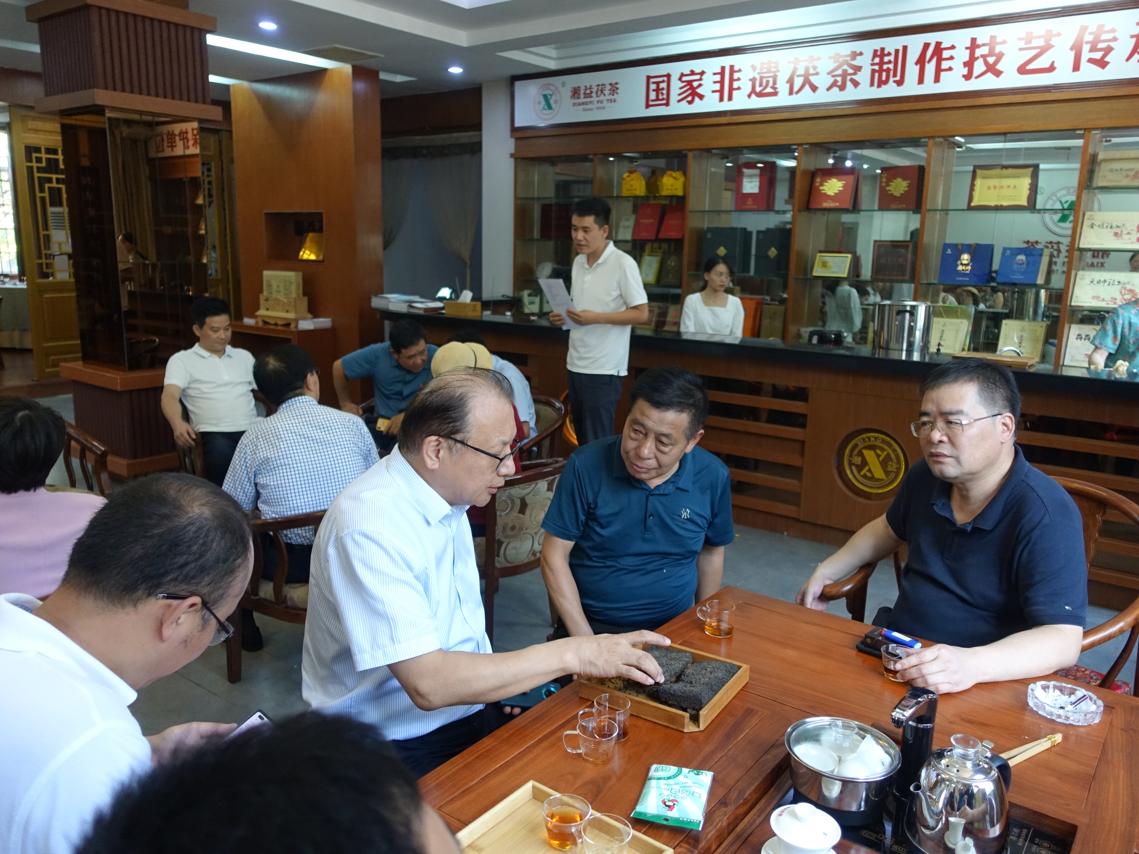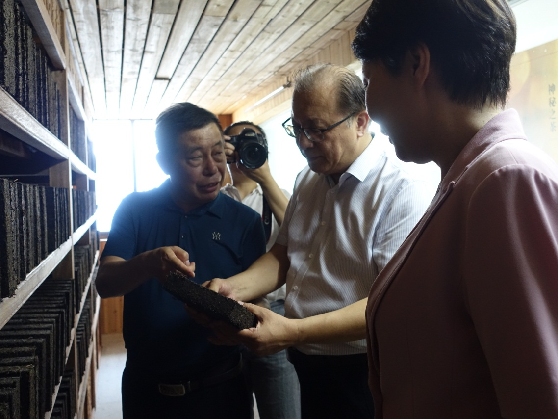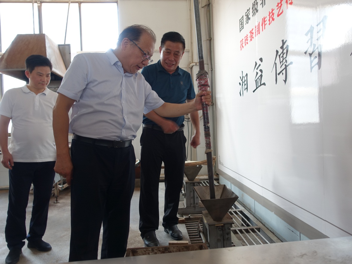 9月26日,文化和旅游部非遺司司長王晨陽、綜合處處長李繪新、管理處處長王暉、管理處干部李娃,中國茶葉博物館研究館員朱慧穎、中國農(nóng)業(yè)科學(xué)院研究所二級研究員魯成銀,中國藝術(shù)研究院文化戰(zhàn)略發(fā)展研究中心主任羅微,湖南省文化和旅游廳副廳長張?;?、非遺處處長顏喜、副處長肖正湖等,到公司考察調(diào)研國家非物質(zhì)文化遺產(chǎn)茯磚茶制作技藝的傳承保護(hù)與發(fā)展情況。益陽市副市長楊智華、副秘書長王國保、宣傳部副部長、文旅廣體局黨組書記、局長陶漢文、副局長羅衛(wèi)榮、文化遺產(chǎn)科科長蔡愛武等陪同調(diào)研。公司董事長彭雄根、總經(jīng)理陳小春、副總經(jīng)理、國家茯磚茶制作技藝非物質(zhì)文化遺產(chǎn)代表性傳承人劉杏益等熱情接待。