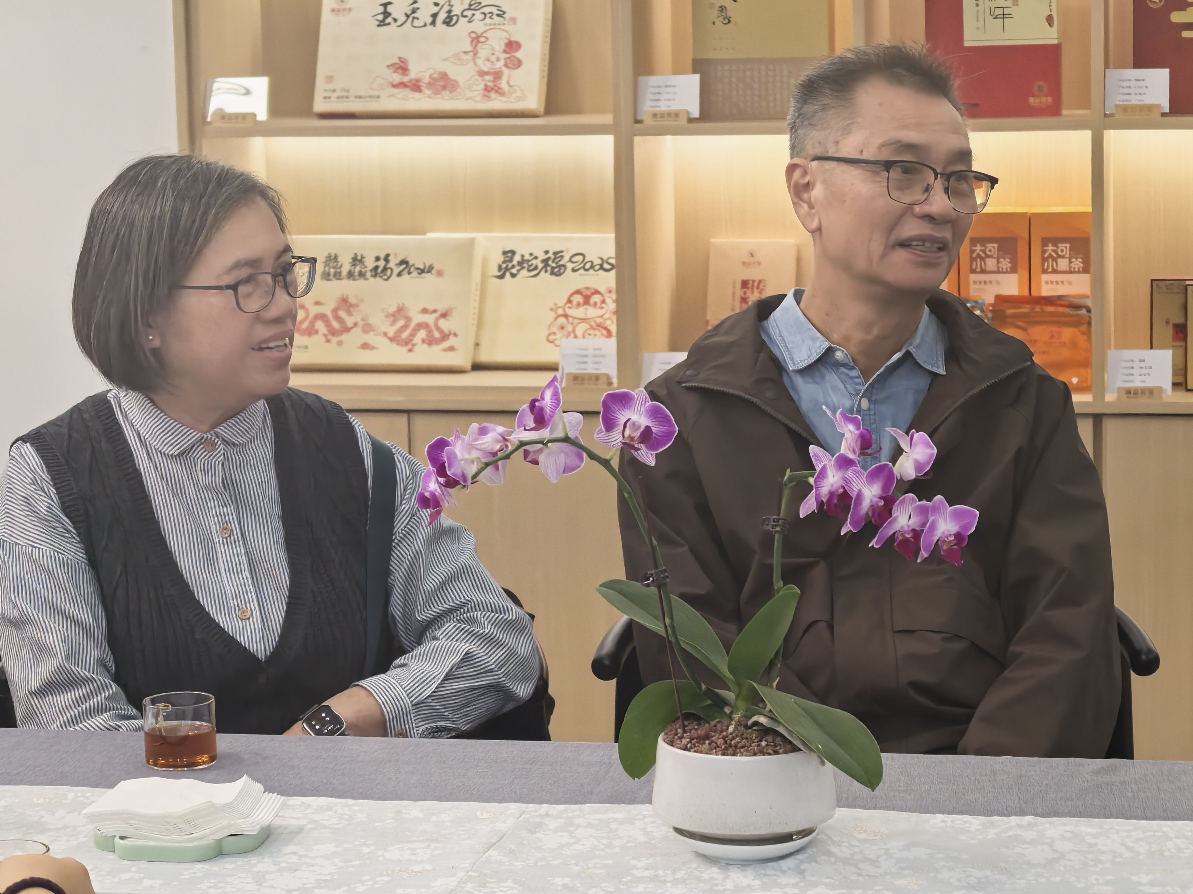 隨后,雙方移步至審評室與湘益體驗(yàn)館,在此進(jìn)行了專業(yè)的茶葉審評與深入的交流座談??腿藗儸F(xiàn)場品鑒了多款湘益產(chǎn)品,對其獨(dú)特的“菌花香”與醇和口感給予了高度評價(jià),雙方就茶藝發(fā)展與茶文化傳播進(jìn)行了富有成效的探討。